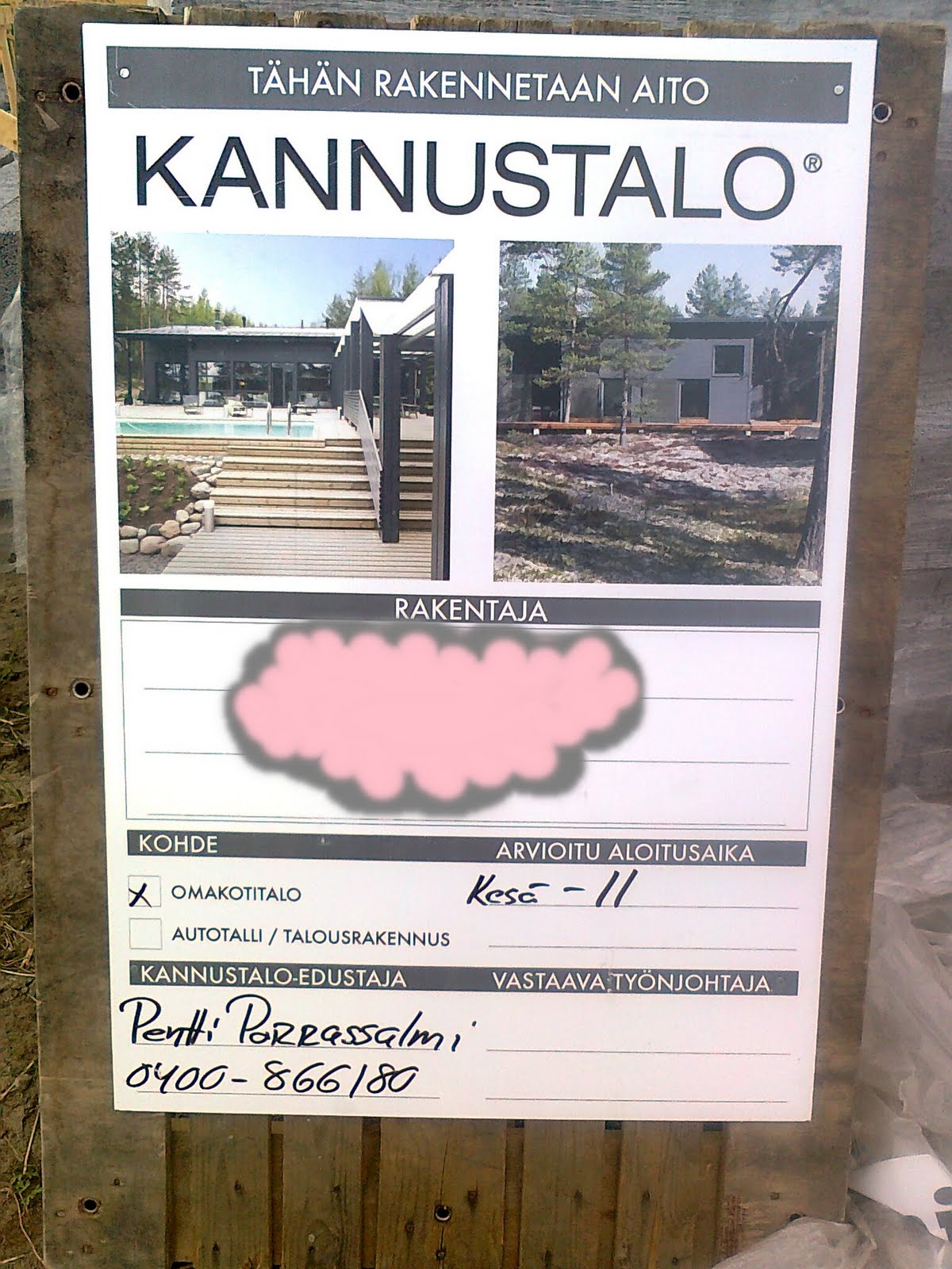 Viikonlopun aikana tontille tupsahti nimikyltti. Kyltti on ihan hyvä olla nyt jo olemassa, ettei jokaisella tavaran tuojalle tarvitse selittää missä tontti sijaitsee.